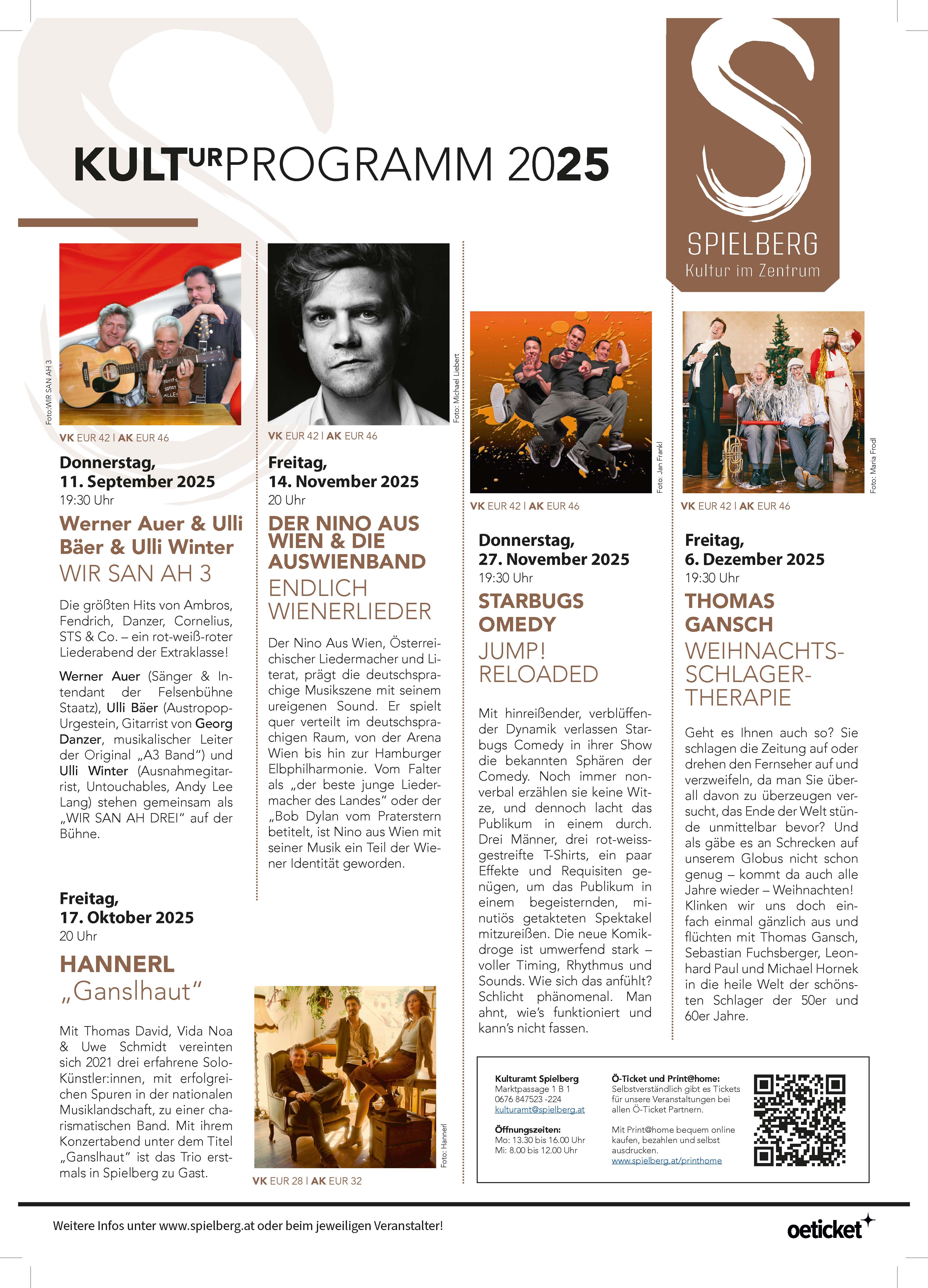 Wo ist wann was los in unserer Stadtgemeinde?! Einen Überblick aller Kulturveranstaltungen und Vereins-Highlights finden Sie als Beilage in der jeweils aktuellen Gemeindezeitung oder hier online.