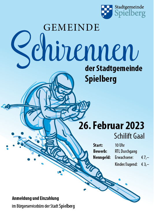 "Schi heil" heißt es am Sonntag, 26. Februar beim Schirennen der Stadtgemeinde Spielberg in der Gaal. Wir freuen uns auf Ihre Anmeldung!