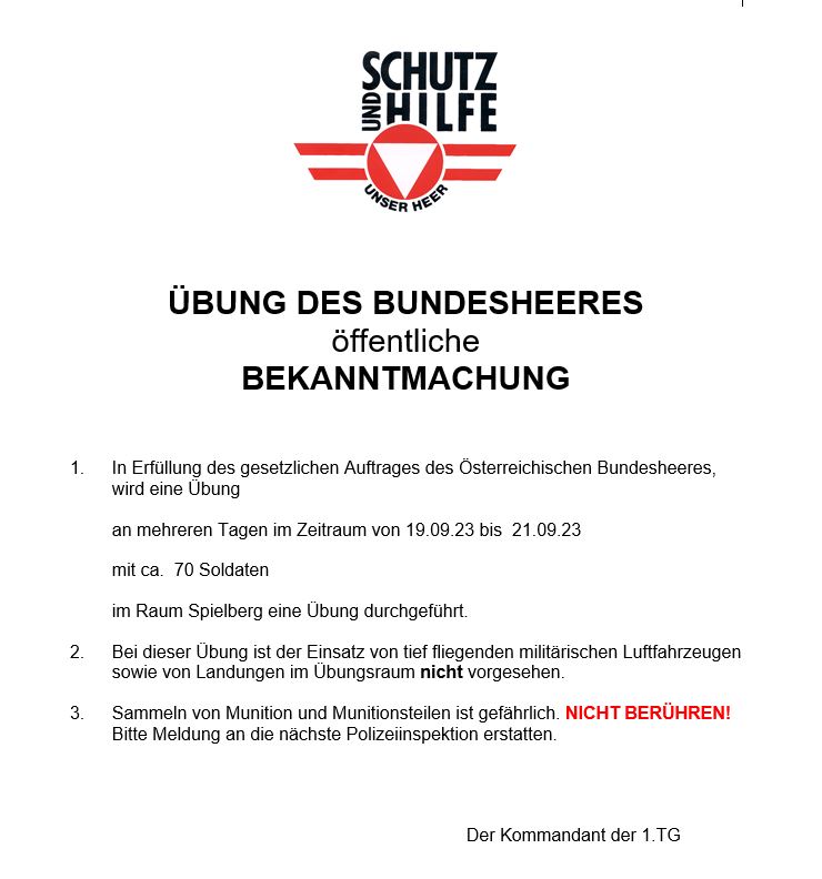 Information Übung des Bundesheeres (19.9-21.9.2023)
