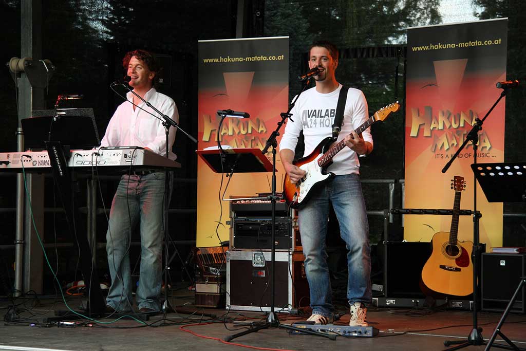 Was wäre ein Fest ohne die bekannte Kultband Hakuna Matata? Von der gemeinsamen Leidenschaft zur Musik lebt die Live-Performance der beiden Vollblutmusiker Heimo Schneidler und Uwe Schmidt, die am 15. Juni 2019 in Spielberg bei einem Freiluftkonzert gemeinsam auf der Bühne stehen und mit musikalischen Leckereien und einem besonderen Musikerlebnis zum Mitfeiern einladen.