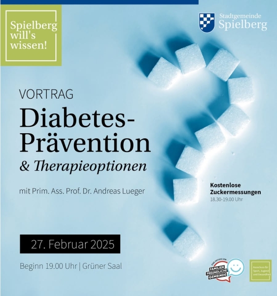 Der Ausschuss für Sport, Jugend und Gesundheit lädt zu einem interessanten Vortrag mit Prim. Ass. Prof. Dr. Andreas Lueger im Grünen Saal der Kulturräumlichkeiten Spielbergs.