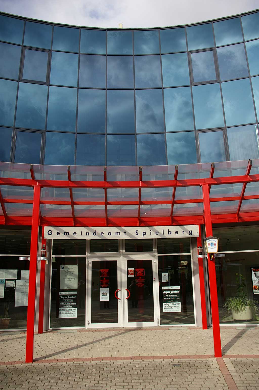 Die Geschäfte der Stadtgemeinde Spielberg werden durch das Stadtamt besorgt. Dieses besteht aus verschiedenen Abteilungen, wobei der Vorstand des Stadtamts der Bürgermeister ist. Er vertritt die Gemeinde nach außen und ist Vorgesetzter aller Gemeindebediensteter.